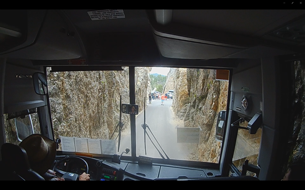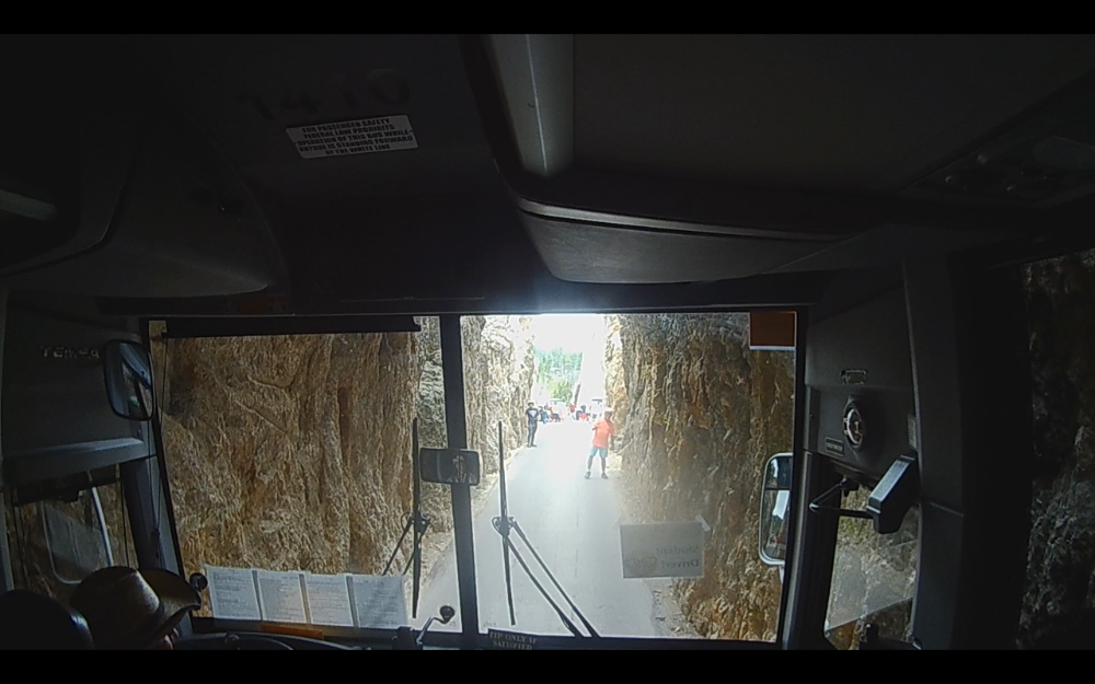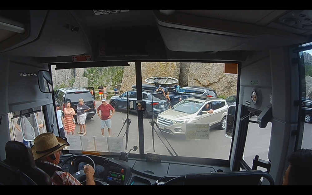 Our bus. You can see a side view of Mt Rushmore in the distance.